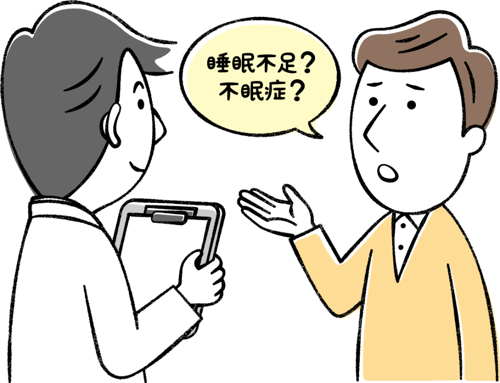 不眠症と睡眠不足はよく混同されがちですが、まず睡眠不足は、就労や学習、不規則な生活などにより、偏った睡眠習慣となり、その人にとって十分な睡眠が得られずにいる状態をいいます。ただし、必要な睡眠時間は、年齢による差や個人差があります。日中、眠気のために仕事や家事に困難を感じなければ、睡眠不足の心配はないでしょう。