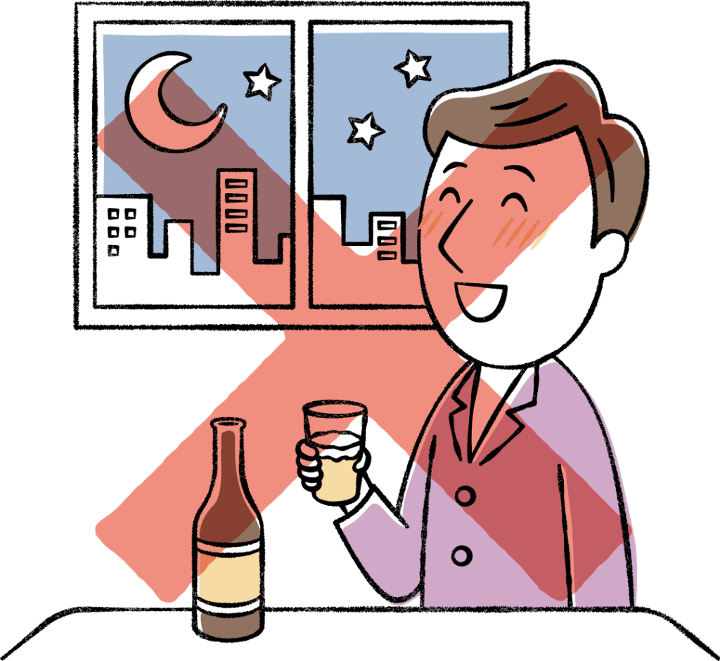 アルコールは睡眠の質を低下させるため、夜間に何度も目が覚めたり、眠りが浅い状態になったりします。トイレに行きたくなって目が覚めることもあります。