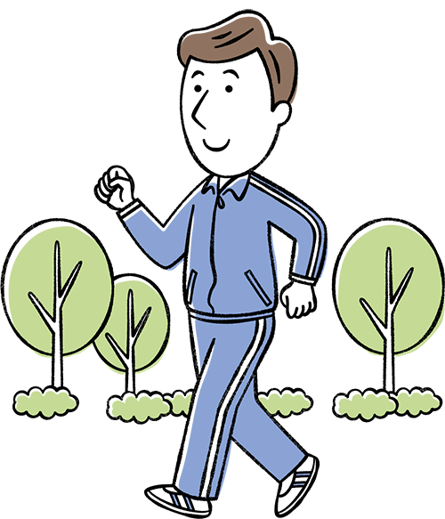 - 運動の習慣は夜の熟睡を促します。軽く汗ばむ程度の適度な運動を定期的に行うよう心がけましょう。