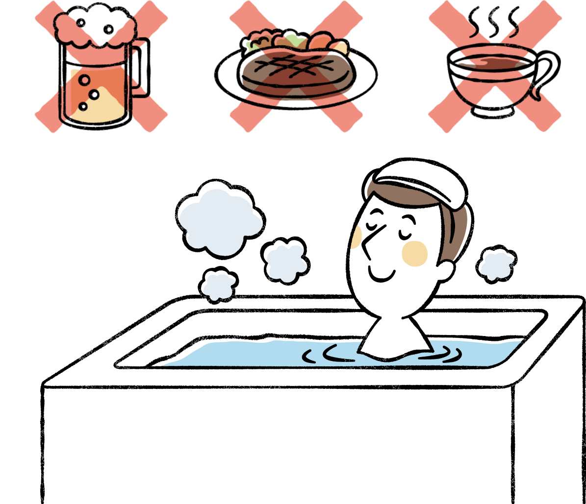 - 就寝4~5時間前からはカフェインやアルコール、胃にもたれる食事の摂取は控えましょう。