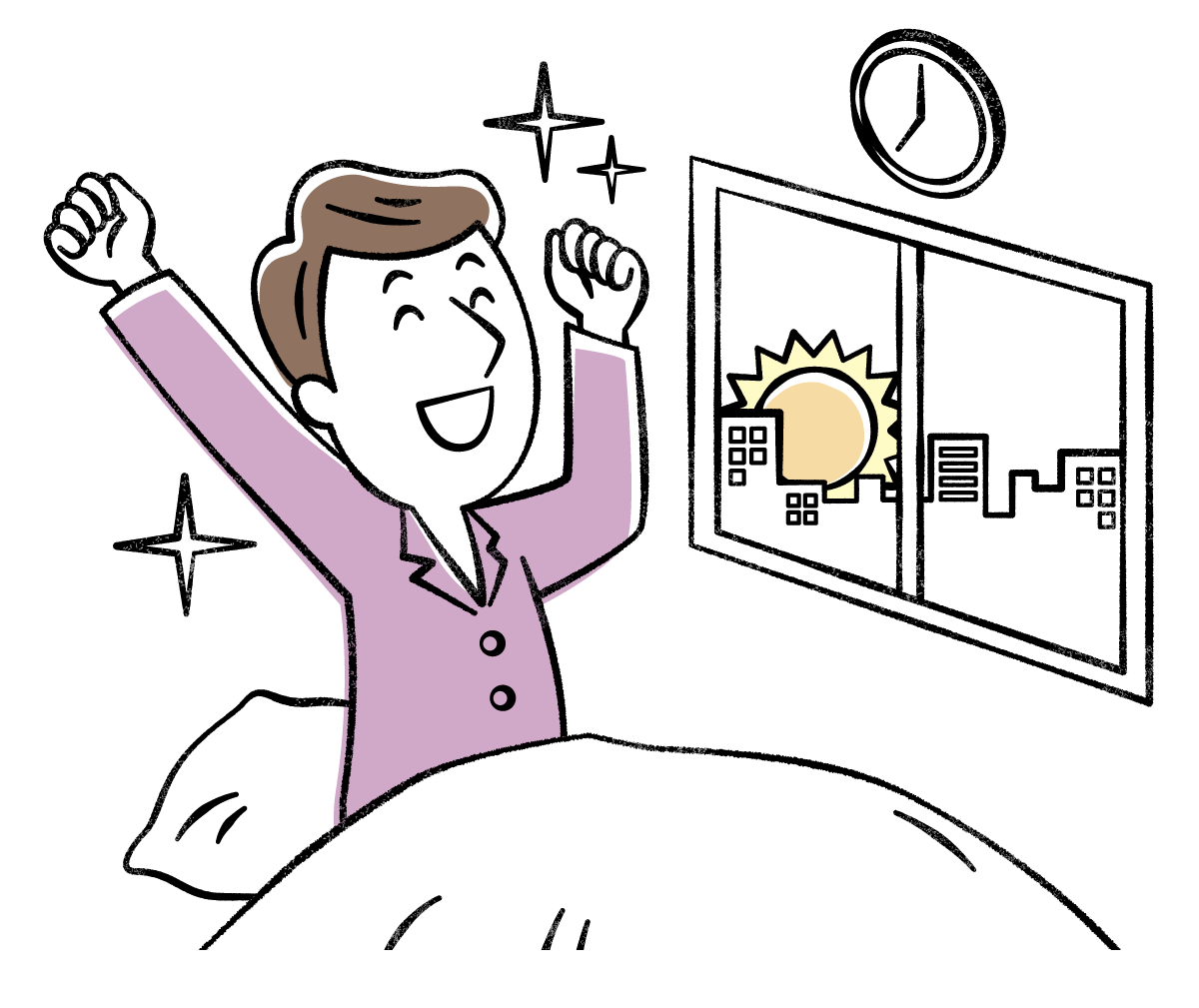 - 毎日の決まった時間に起床することで、体に一定の睡眠と覚醒のリズムが身につき、自然に早寝早起きへの習慣へとつながります。