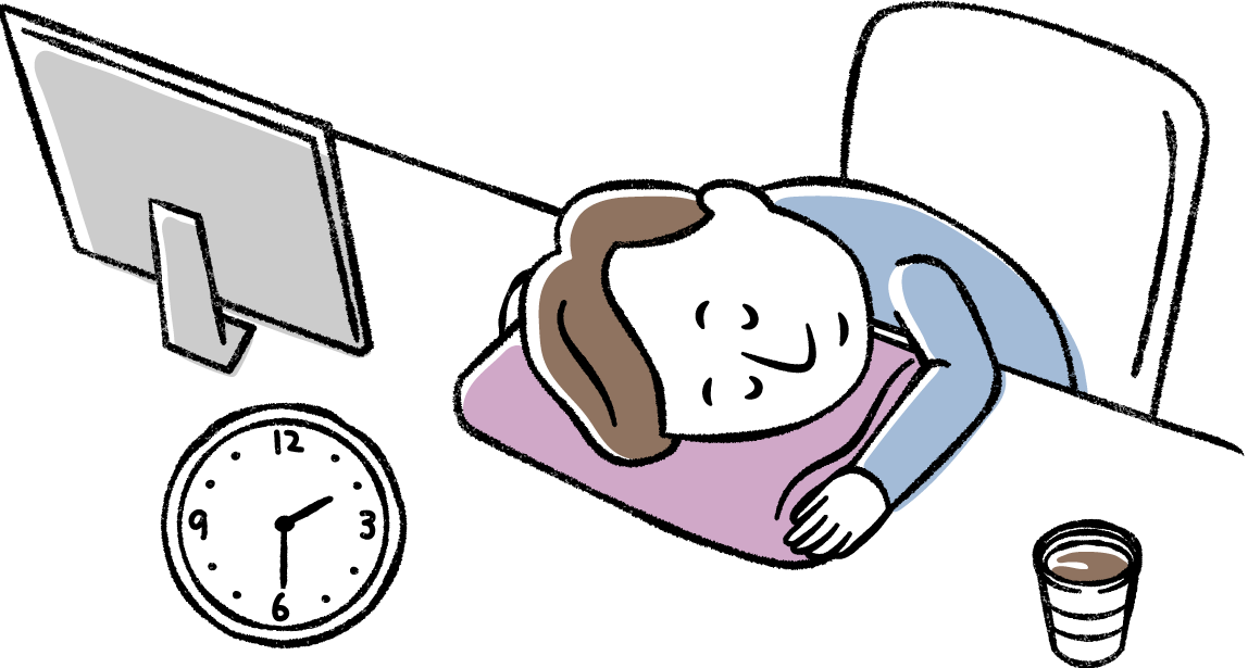 - ただし、長時間(30分以上)の昼寝は深い眠りに入ってしまい、脳と身体が休息モードに入ってしまってかえって逆効果です。
